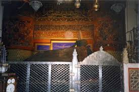 The Apostle’s body, it should be remembered, lies, or is supposed to lie, stretched at full length on the right side, with the right palm supporting the right cheek, the face fronting Meccah, as Moslems are always buried, and consequently the body lies with the head almost due West and the feet due East. Close behind him is placed Abu Bakr, whose face fronts the Apostle’s shoulder50 ; and, lastly, Omar holds the same position with respect to his predecessor.